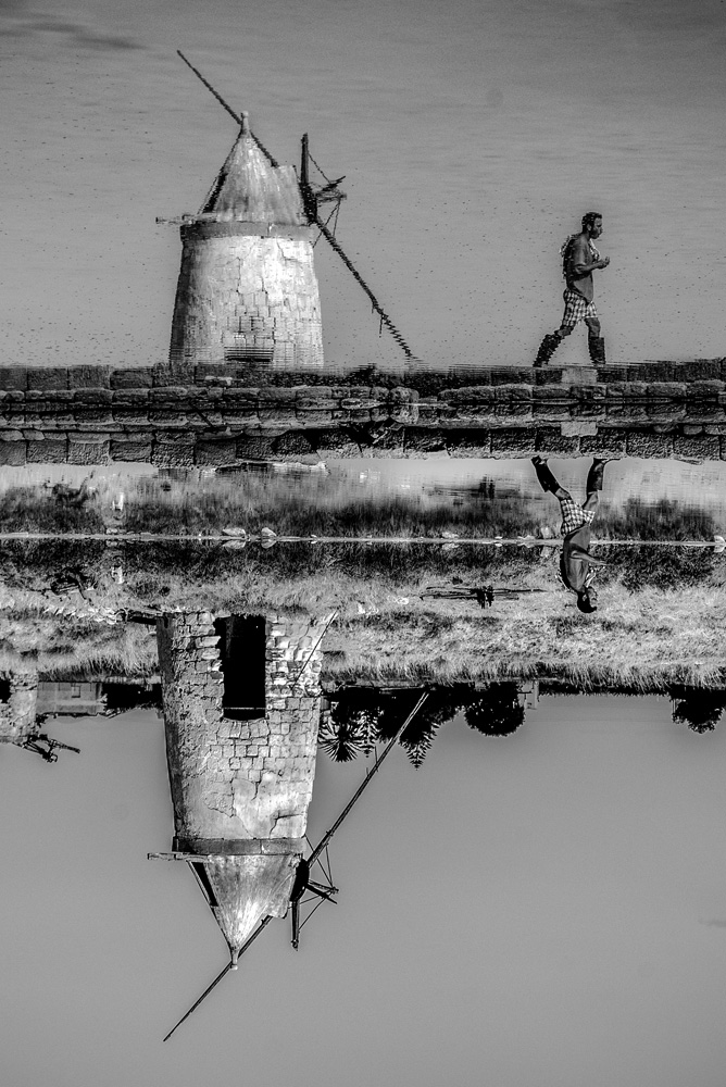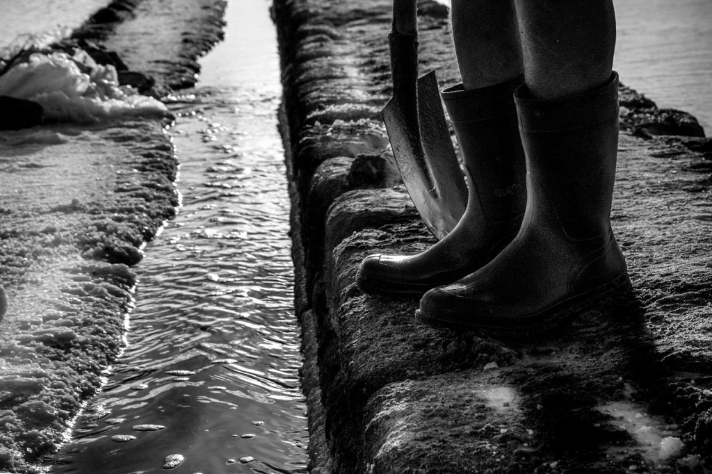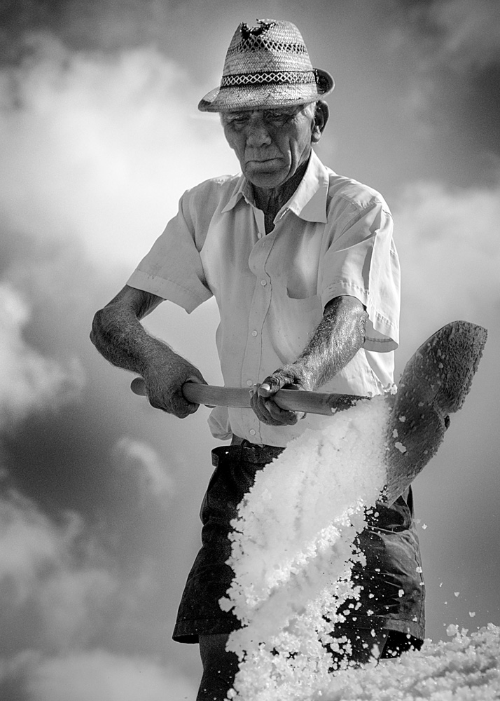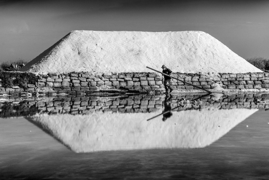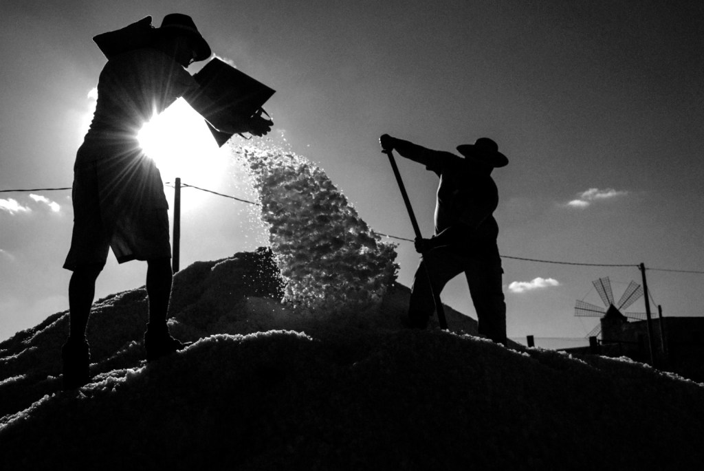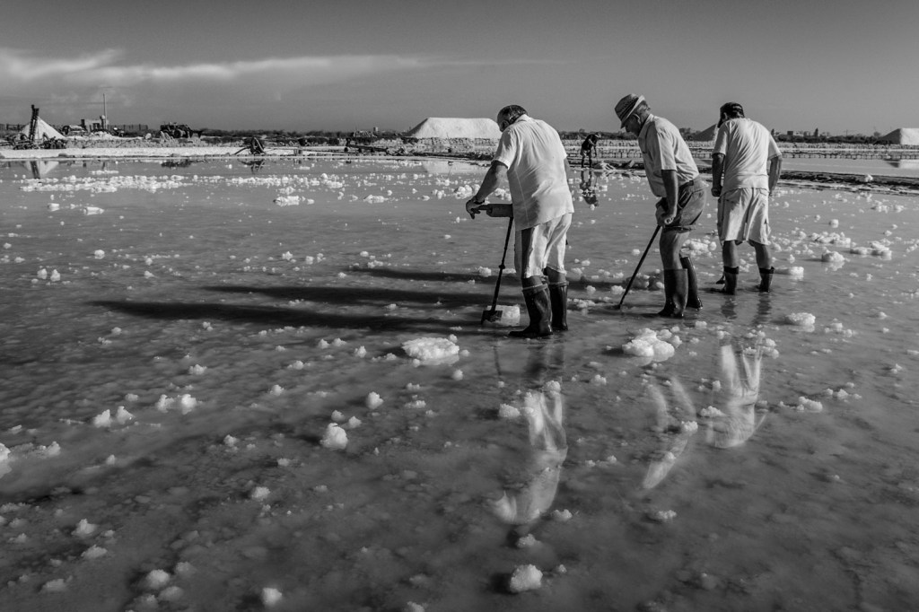 Salanitro è un progetto a lungo termine che porto avanti da oltre 18 anni e che non si è ancora concluso. Si sviluppa all’interno della Riserva naturale orientata delle Saline di Trapani e Marsala, in un percorso che attraversa vasche colme d’acqua, mulini a vento fra i più belli d’Europa, canali e montagne di sale. I canti dei salinai accompagnano ritmicamente i gesti, in una tradizione antica che si tramanda identica da generazioni. L’acqua di mare, raccolta nelle vasche, lentamente evapora sotto il cocente sole estivo, e giorno dopo giorno, il sale si incrosta sul fondo, pronto per essere frantumato e raccolto con pale e carriole, ma soprattutto forza e sudore. Negli ultimi anni il mercato ha messo in difficoltà molte famiglie di salinai a seguito dell’importazione di un sale meno pregiato dalla Tunisia, e alcune saline sono state costrette a chiudere. Quando mi sono trovata a fotografare il loro lavoro, non è stato un semplice reportage, ma un ritorno alle mie origini, ai colori e profumi che hanno connotato la mia infanzia, un legame con la mia Terra, indissolubile.